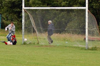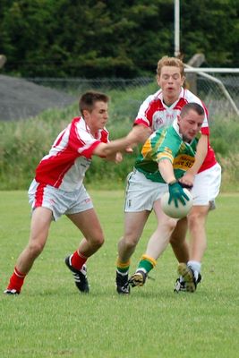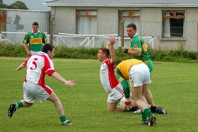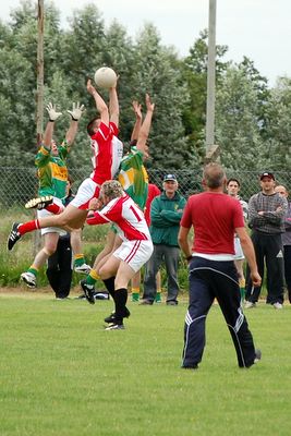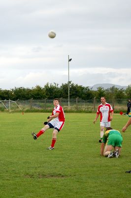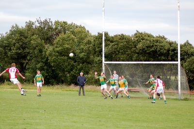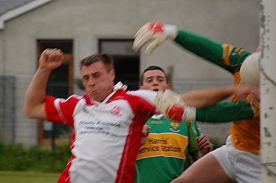The visitors started the stronger of the two teams and registered two early points. Naomh Colmcille then saw one effort come off the posts and another drift narrowly wide and Cathal Curran and Gerard Devenney had to combine to prevent a goal for Convoy. Christpoher Moore got the home side off the mark with a well taken point hooked over his shoulder with his back to goal. Convoy dominated the second quarter, however, and scored three further points and a goal to leave the half time scores at 0-1 to 1-5.