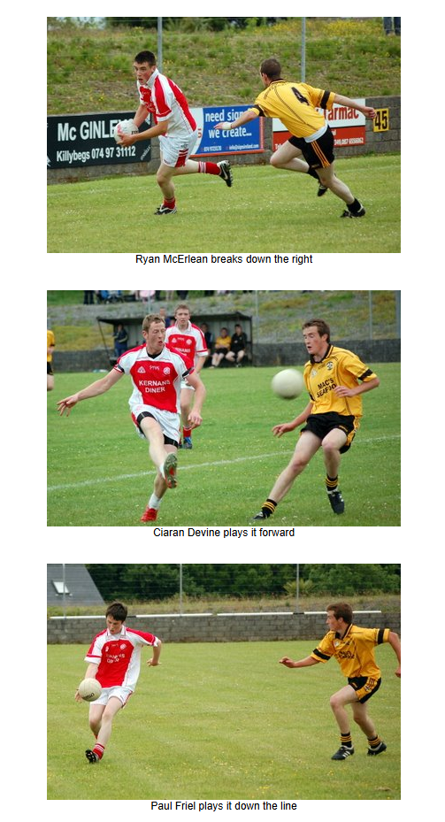 As in the preceding reserve game, the concession of two early goals proved decisive and despite their best efforts, Naomh Colmcille were unable to claw back the defecit against a strong home defence.