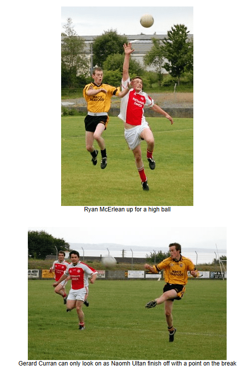 With 5 minutes to go, as Naomh Colmcille pressured the home defence, a goal on the counterattack from Naomh Ultan effectively killed the game off.