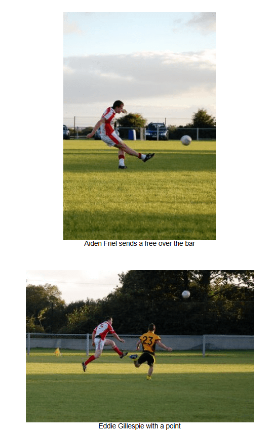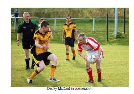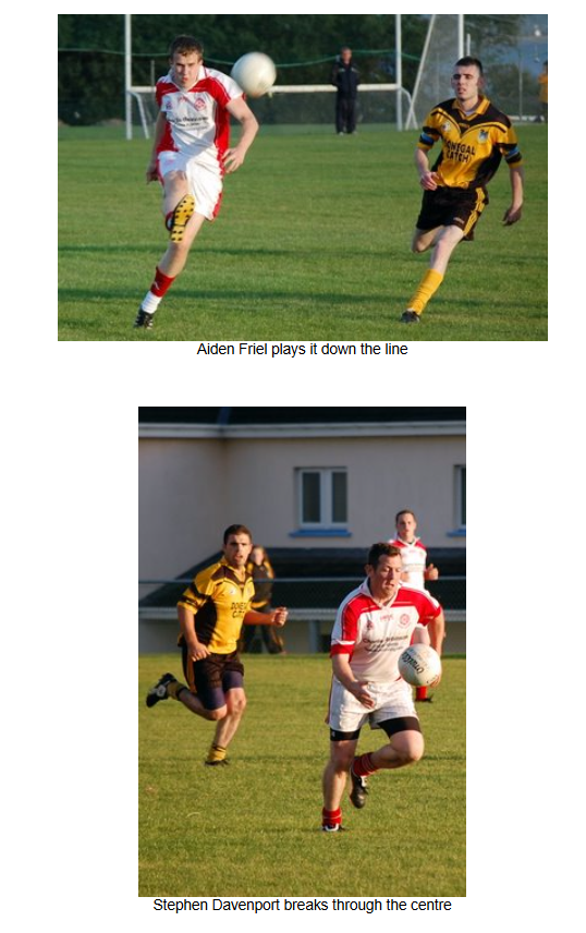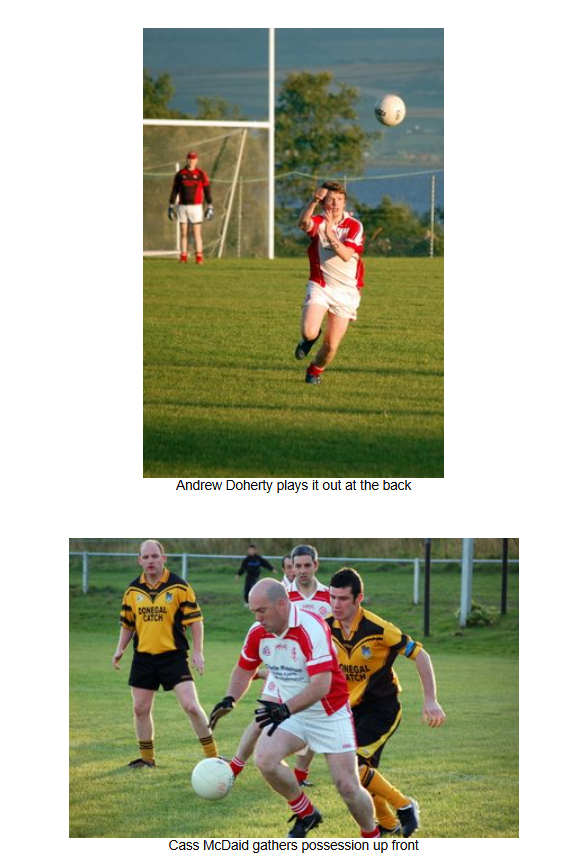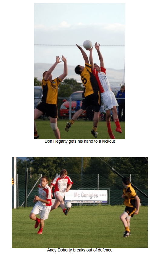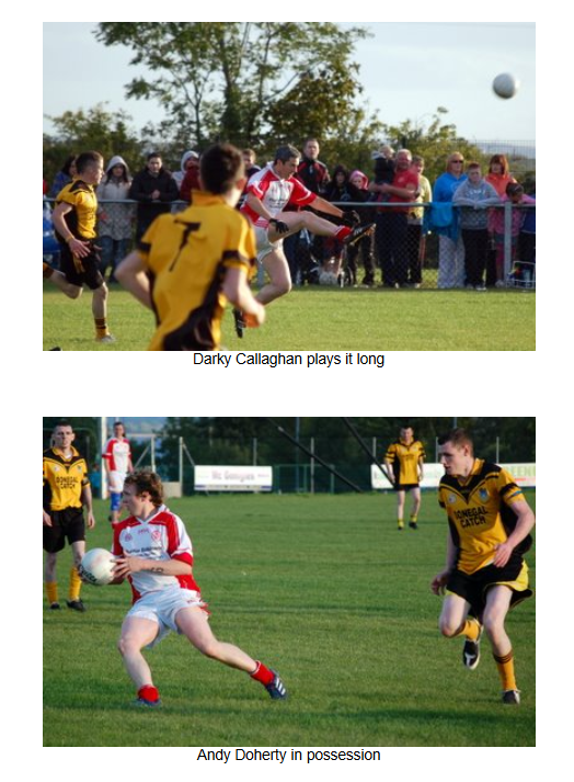 In the final quarter, however, the entire Naomh Colmcille team showed great commitment and fitness to outscore Malin and push on for the win. In the last ten minutes, the Naomh Colmcille defence restricted Malin to a single point, while at the other end two frees from Aiden Friel and points from Eddie Gillespie and Don Hegarty ensured a 1-12 to 1-09 win for Naomh Colmcille, who now go into the draw for the semi-final.