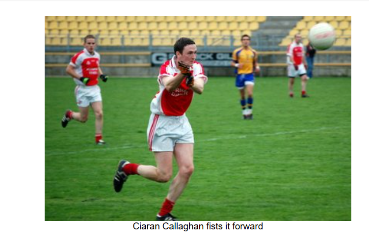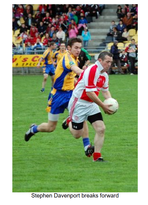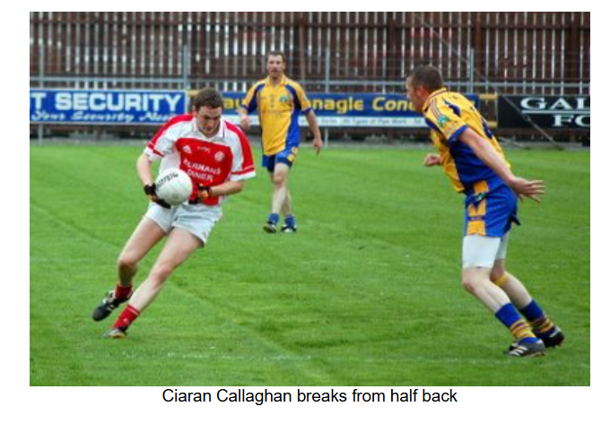 Burt were first off the mark with a point after two minutes. Naomh Colmcille’s gameplan was then thrown up in the air when both Gerard and Cathal Curran were forced to leave the field due to injury in the space of a couple of minutes. First, Gerard Curran suffered a hamstring pull, and he had barely left the pitch before his brother Cathal sustained a bad ankle injury. With two players out of the half back line, Stephen Friel was forced to rejig the team and bring Stephen Davenport and Ruction Callaghan on as replacements.