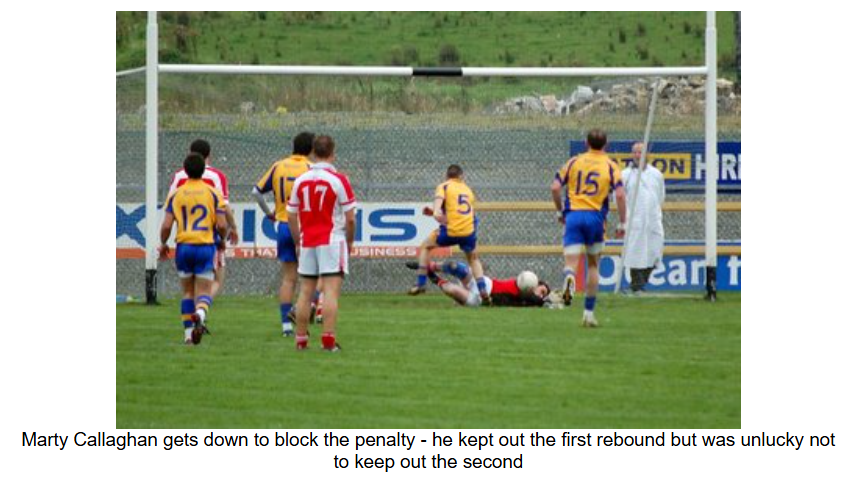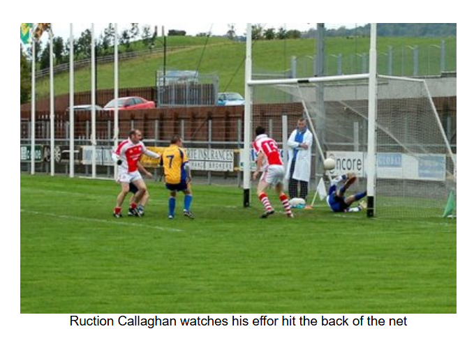 Naomh Colmcille got off to the perfect start in the second half. Stephen Davenport played a high ball to the edge of the square, and Ryan McErlean got a fist to it. The Burt keeper managed to keep the ball out, but it fell to Ruction Callaghan on the edge of the square who made no mistake and rifled the ball into the net. Burt replied with a point and then there was high drama as they were awarded a penalty when one of their forwards was pulled down when he was about to pull the trigger. Marty Callaghan, the Naomh Colmcille keeper, got down low and parried the first effort. It fell back into the path of the penalty taker, but again Callaghan blocked the shot. This time it fell to an onrushing Burt player, who finally buried it in the net.