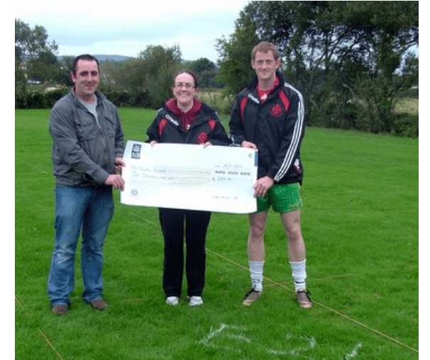 Michael is pictured below being presented with the cheque by Breda Friel, club Vice Chairperson, and Ciaran Devine, who sold the winning ticket.