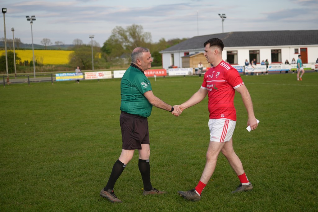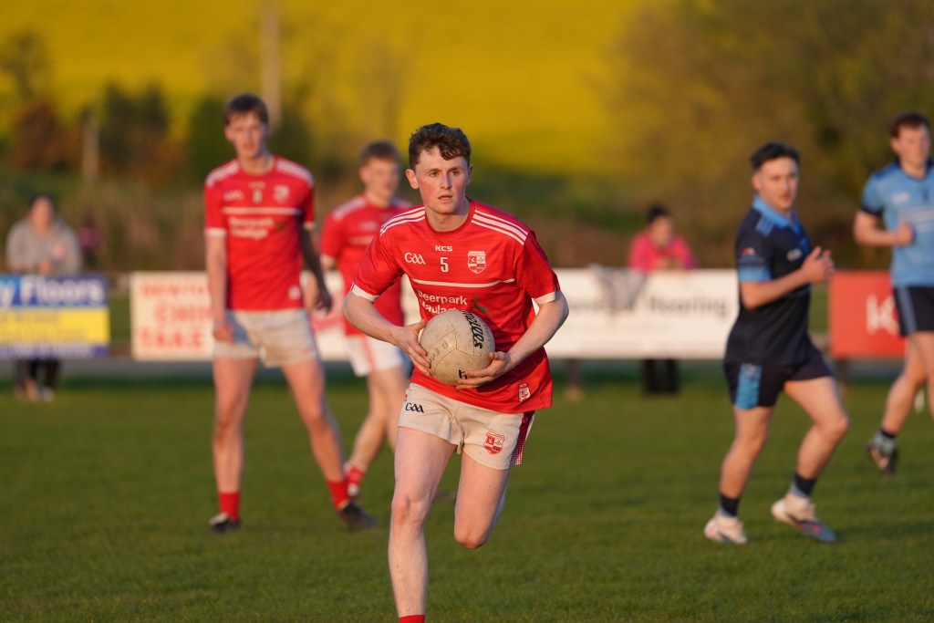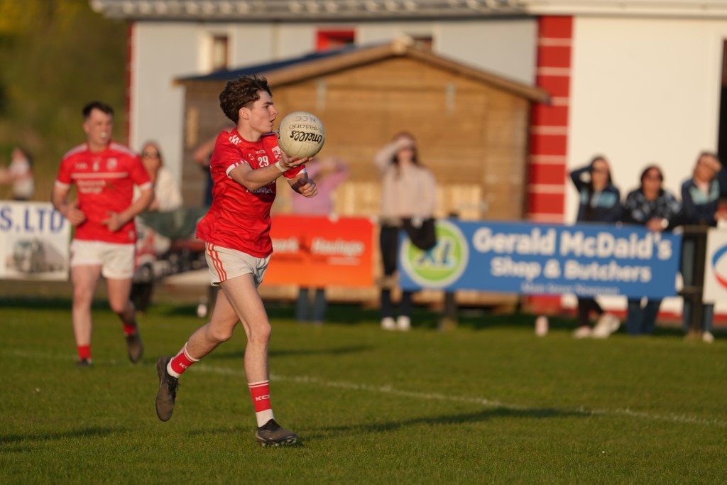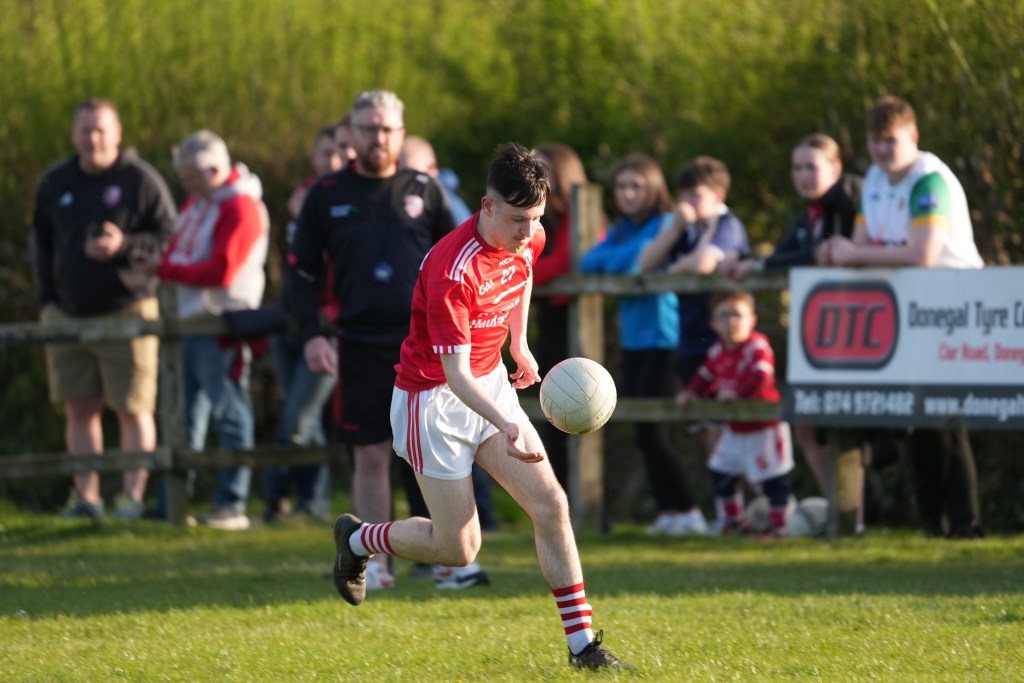 Eoin Flanagan steadied things with a free for Naomh Colmcille after good work from Paul Friel, before a late burst saw the home side regain control. Fintan Loughran carried strongly from midfield and laid off to Monaghan, who finished well to leave it 1-04 to 0-06 at the break.