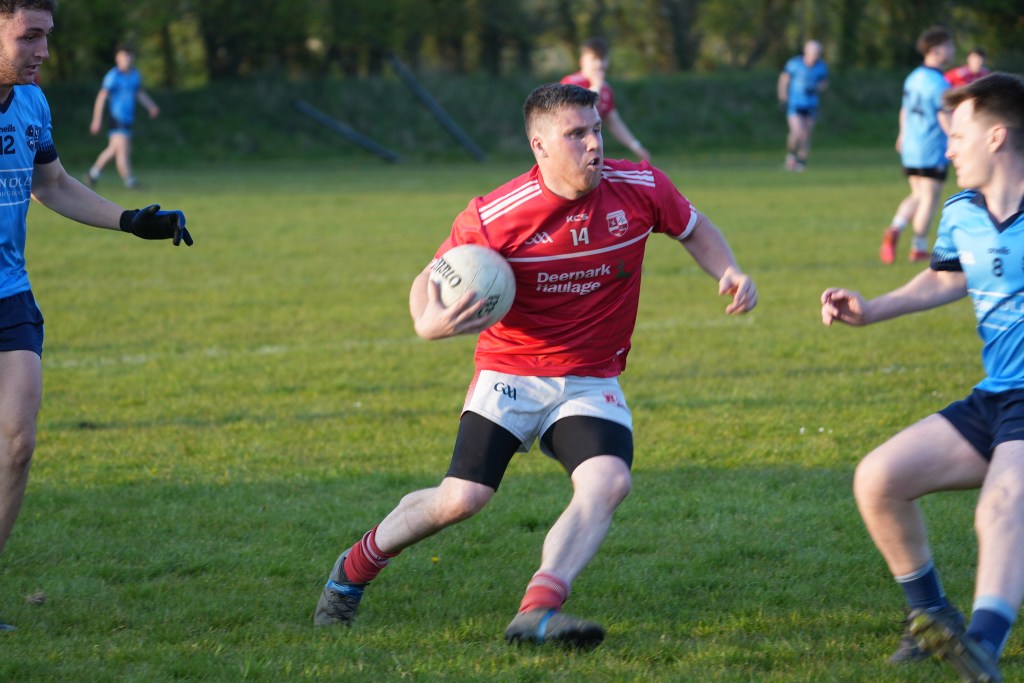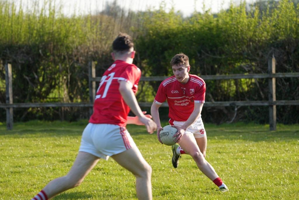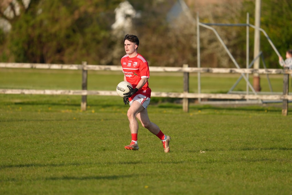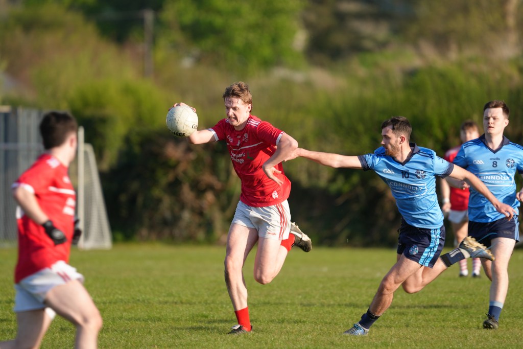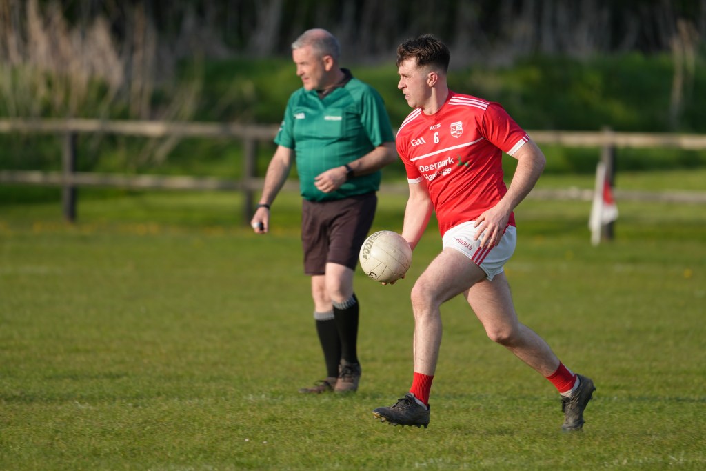 Eoin Flanagan steadied things with a free for Naomh Colmcille after good work from Paul Friel, before a late burst saw the home side regain control. Fintan Loughran carried strongly from midfield and laid off to Monaghan, who finished well to leave it 1-04 to 0-06 at the break.