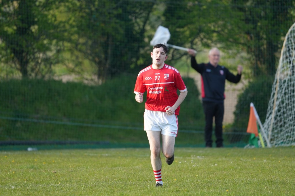 Naomh Colmcille responded well. A short kick-out from Kai Brown to McCole sparked a strong run from Dean Ramsey, who picked out Caolan Monaghan (“Mono”) for a composed point.